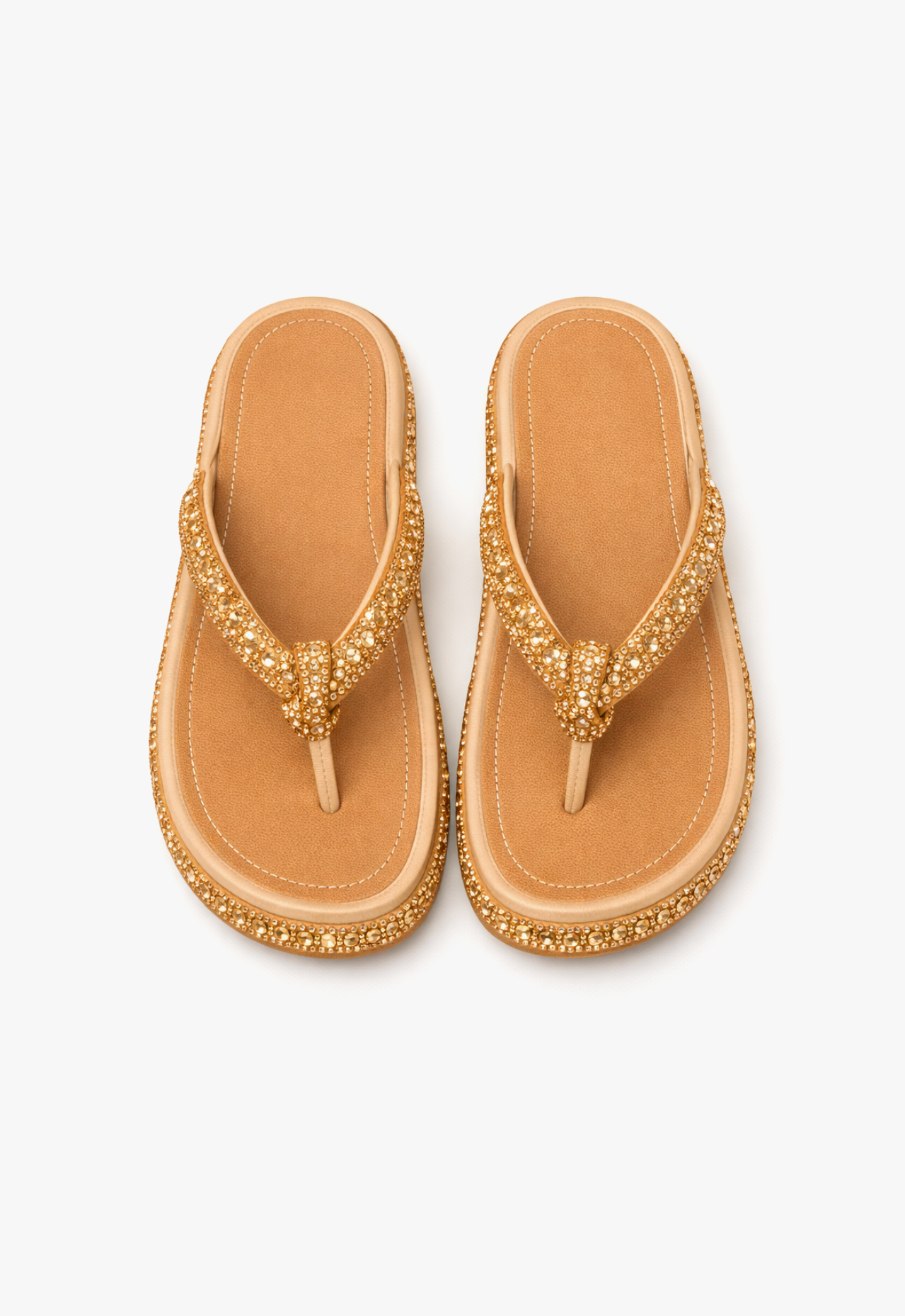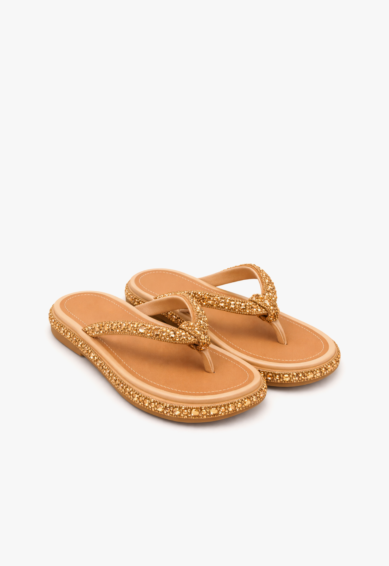 O chinelo de dedo dourado Golden Velvet com pedrarias é a combinação perfeita entre conforto e sofisticação.