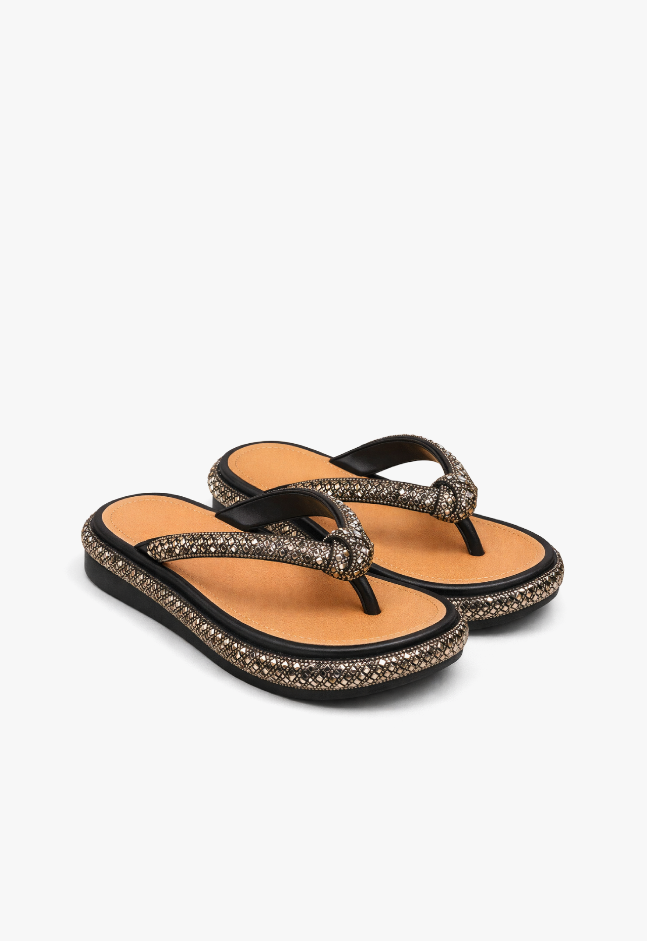 Os detalhes em strass trazem luminosidade e valorizam o visual, tornando o chinelo uma peça-chave no guarda-roupa feminino.