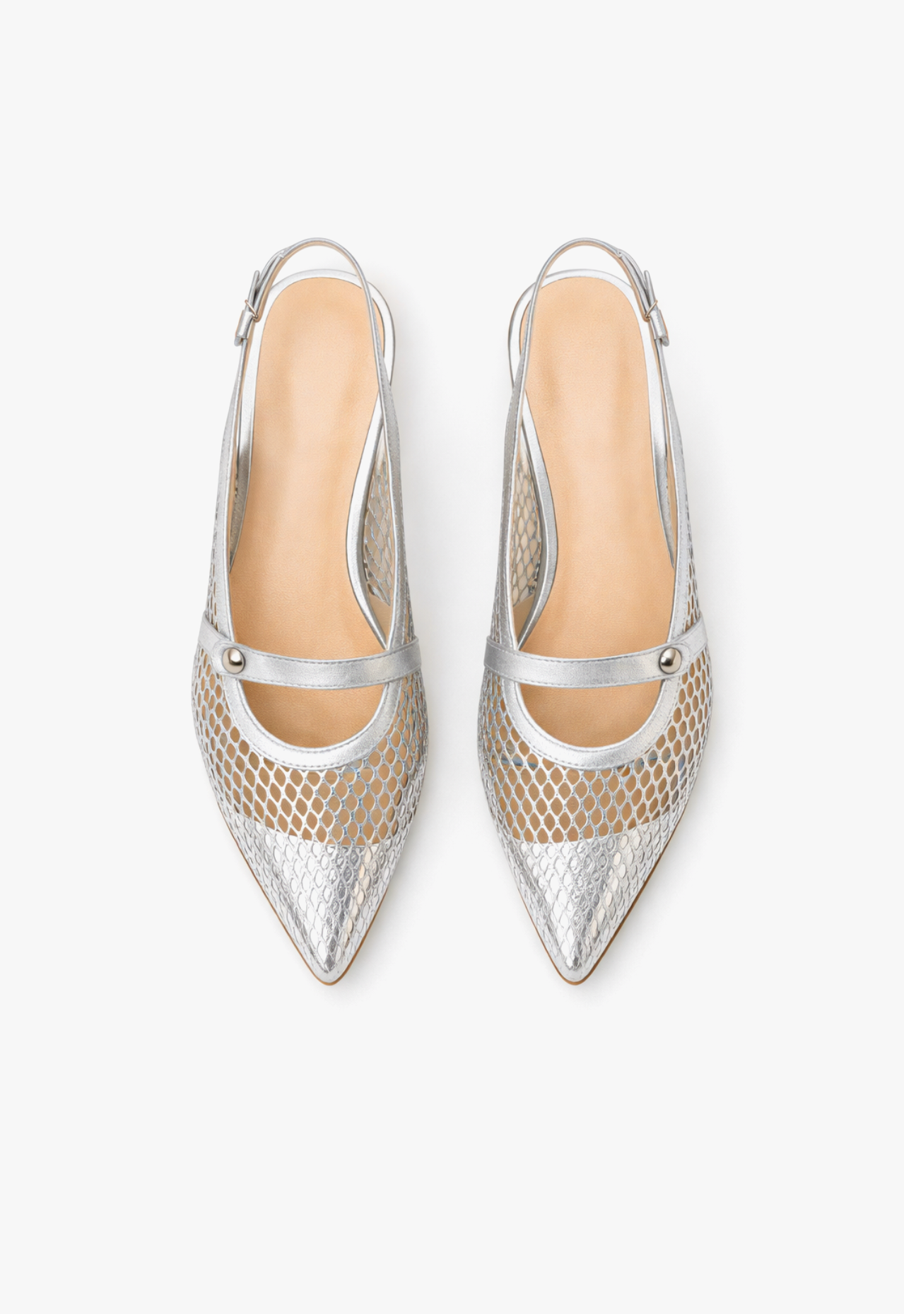 Sapato scarpin slingback feminino salto baixo prata Silver Royale, design elegante e conforto. O sapato scarpin slingback ideal para ocasiões especiais.